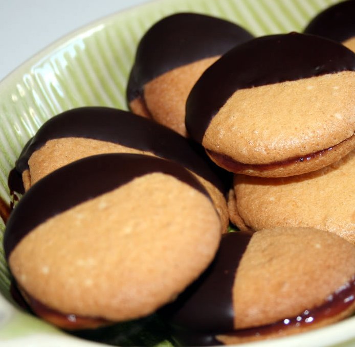 Completate i biscotti intingendoli per metà nel cioccolato fondente fuso a bagnomaria.