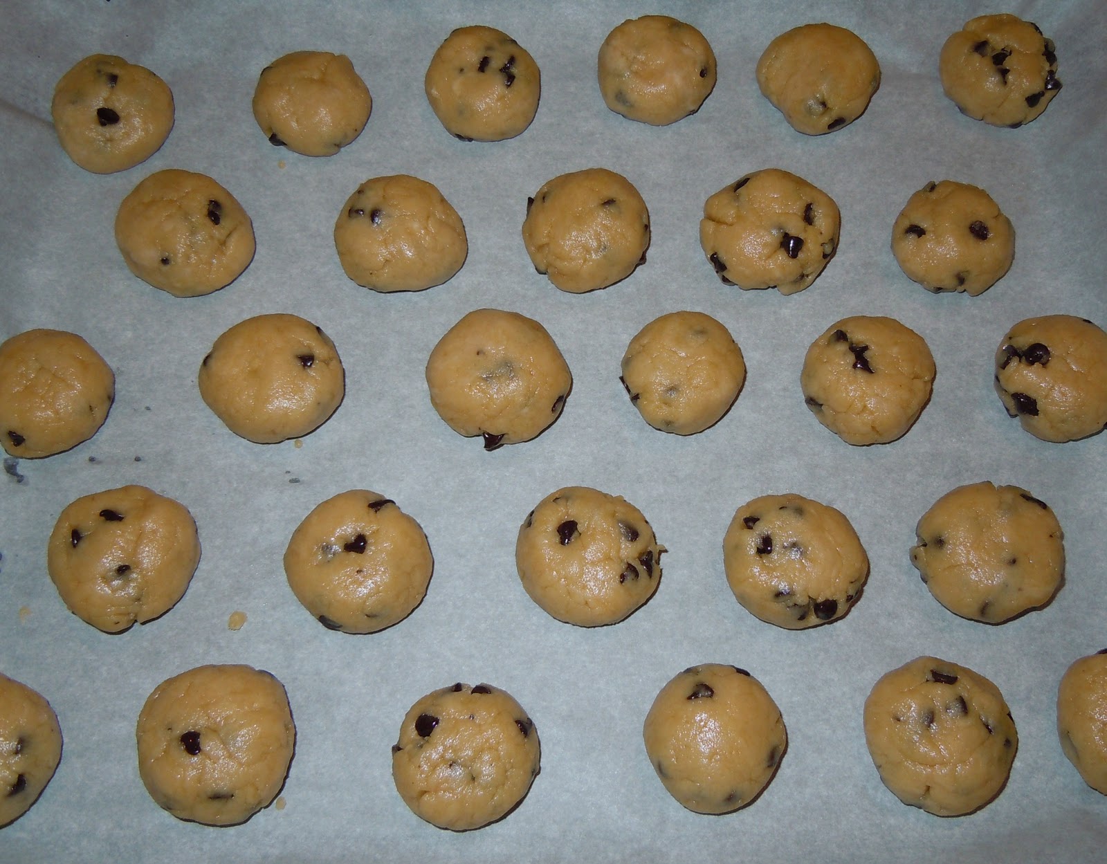 impostare il forno a 180g e mettere dei pignatti di impasto sulla carta da forno ben separati.
