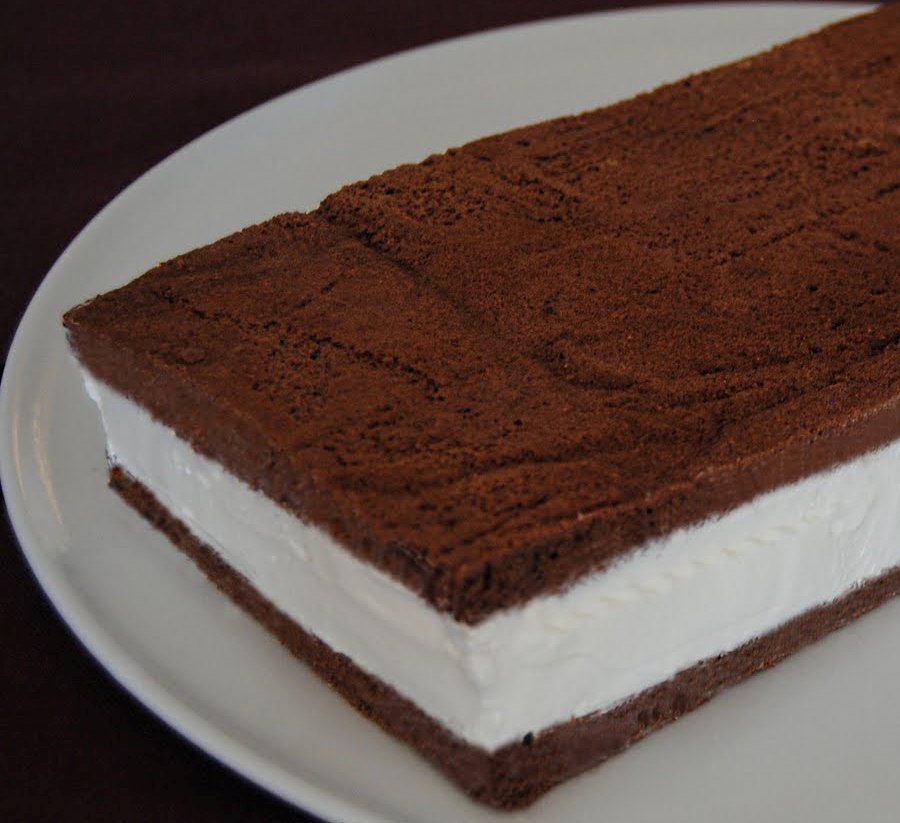 Foderate la placca con un foglio di carta forno sopra il quale metterete il composto stendendolo uniformemente con una spatola. Una volta cotto lasciate raffreddare e dividete il biscotto in due metà uguali.