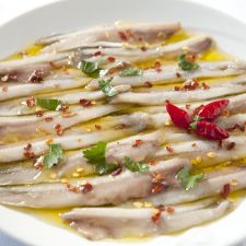 Disponete le alici spinate in un piatto o un contenitore di vetro;