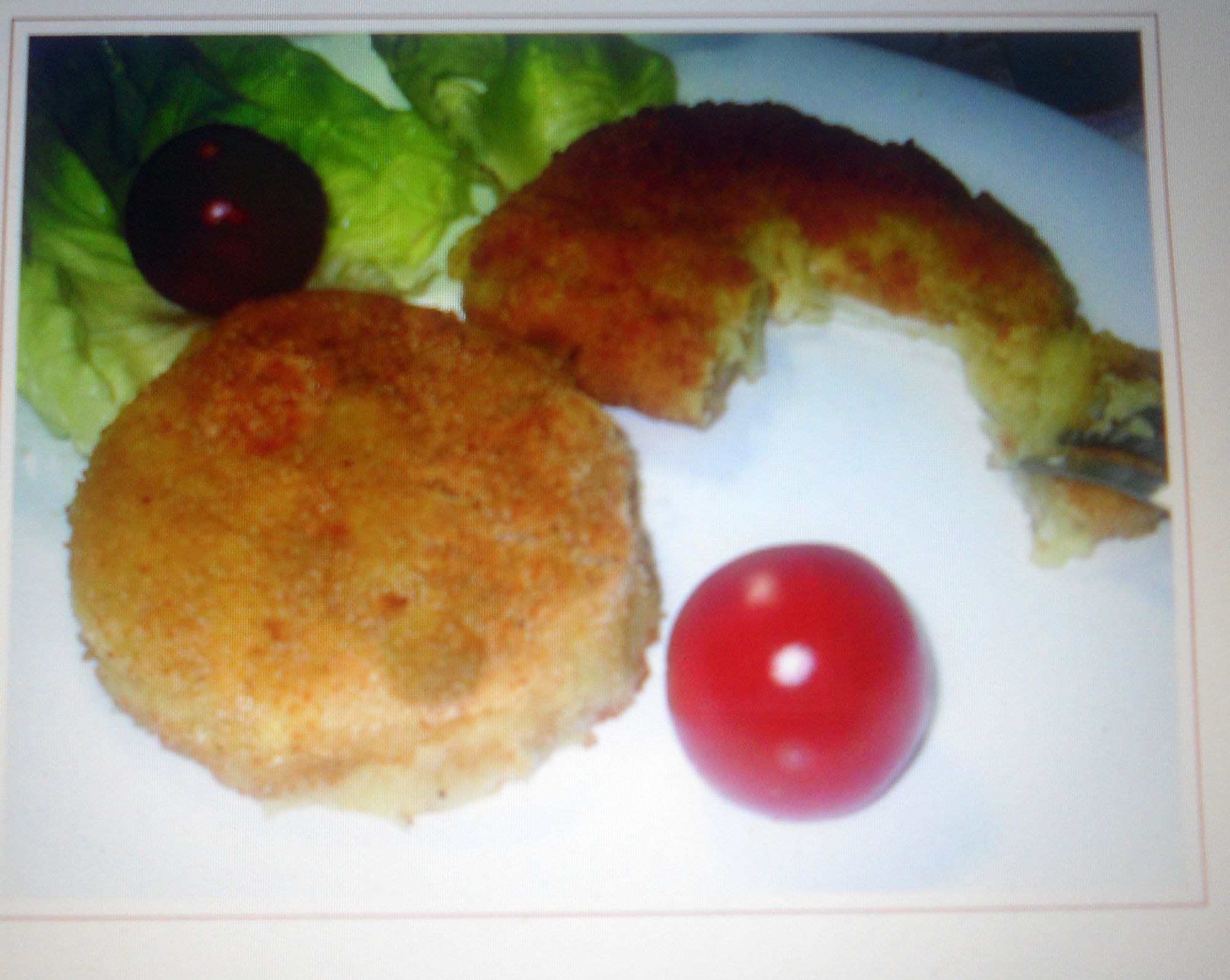 Schiacciare la palla facendolo diventare un hamburger,passarlo nell'uovo e poi nel pangrattato e metterlo sulla leccarda foderata di carta forno e continuare finchè non termina l'impasto.
