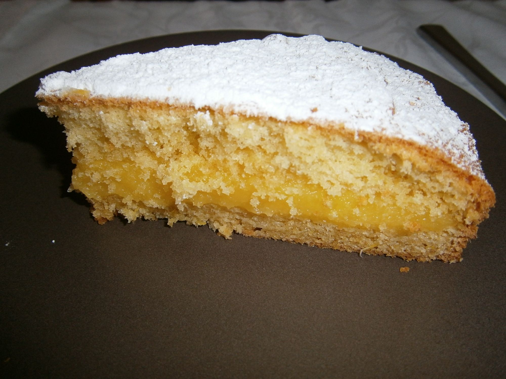 Una volta che la torta si è raffreddata, dividere a metà e riempire con la crema non ancora fredda.