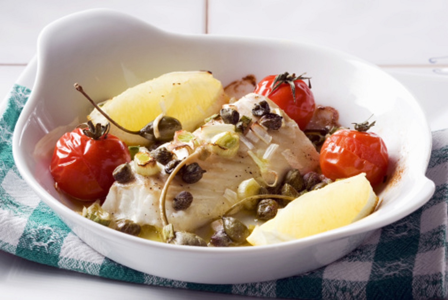 Mettere i filetti di merluzzo in una teglia unta con un cucchiaio di olio extravergine d'oliva.