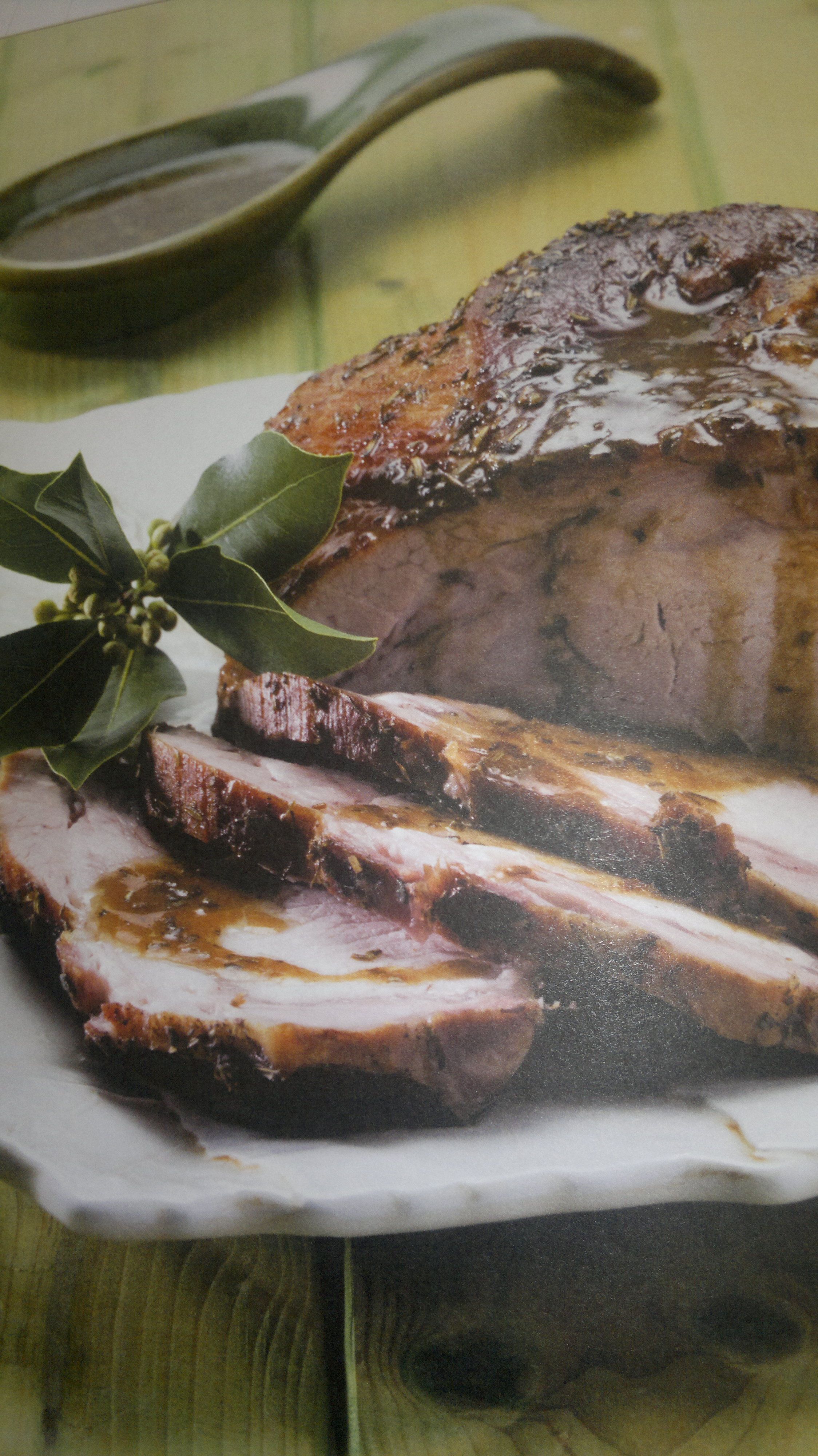 Servire l'arrosto caldo, tagliato a fette e irrorato con la salsa.
