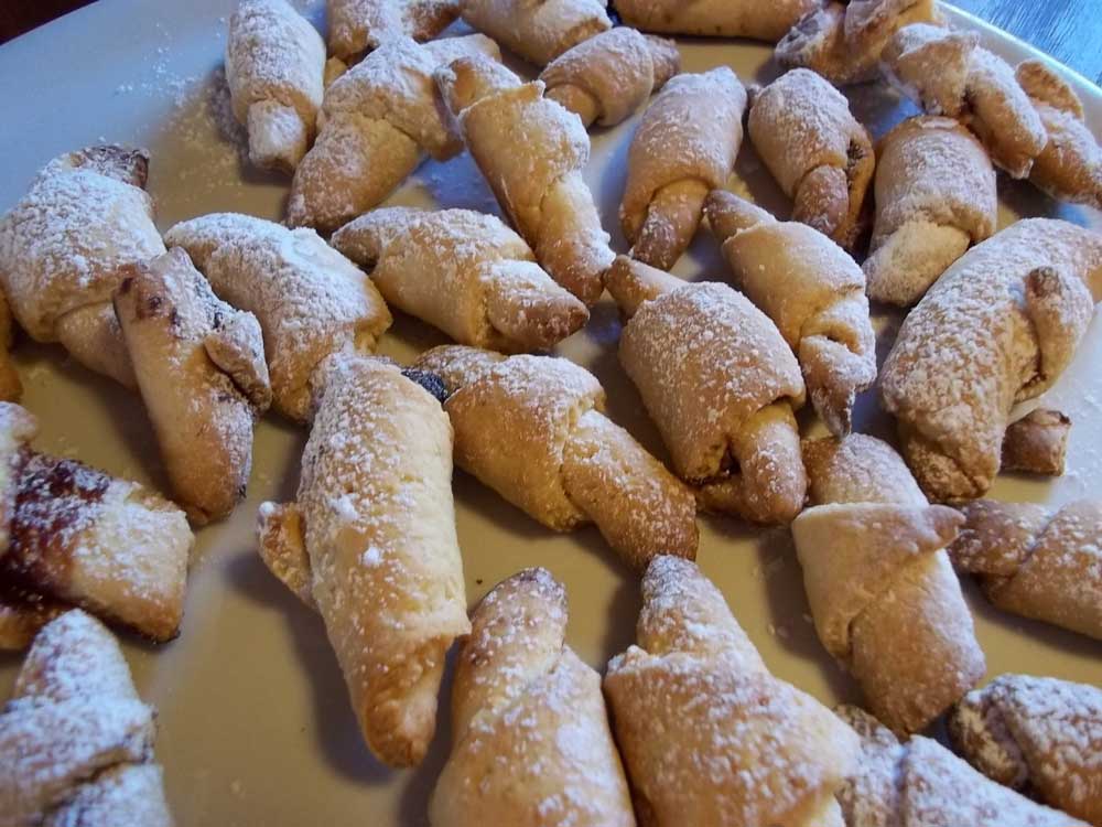 Porre tutti i cornetti sulla placca del forno rivestita con carta forno, e lasciarli cuocere per circa 20 minuti a 160 gradi (fino a doratura).