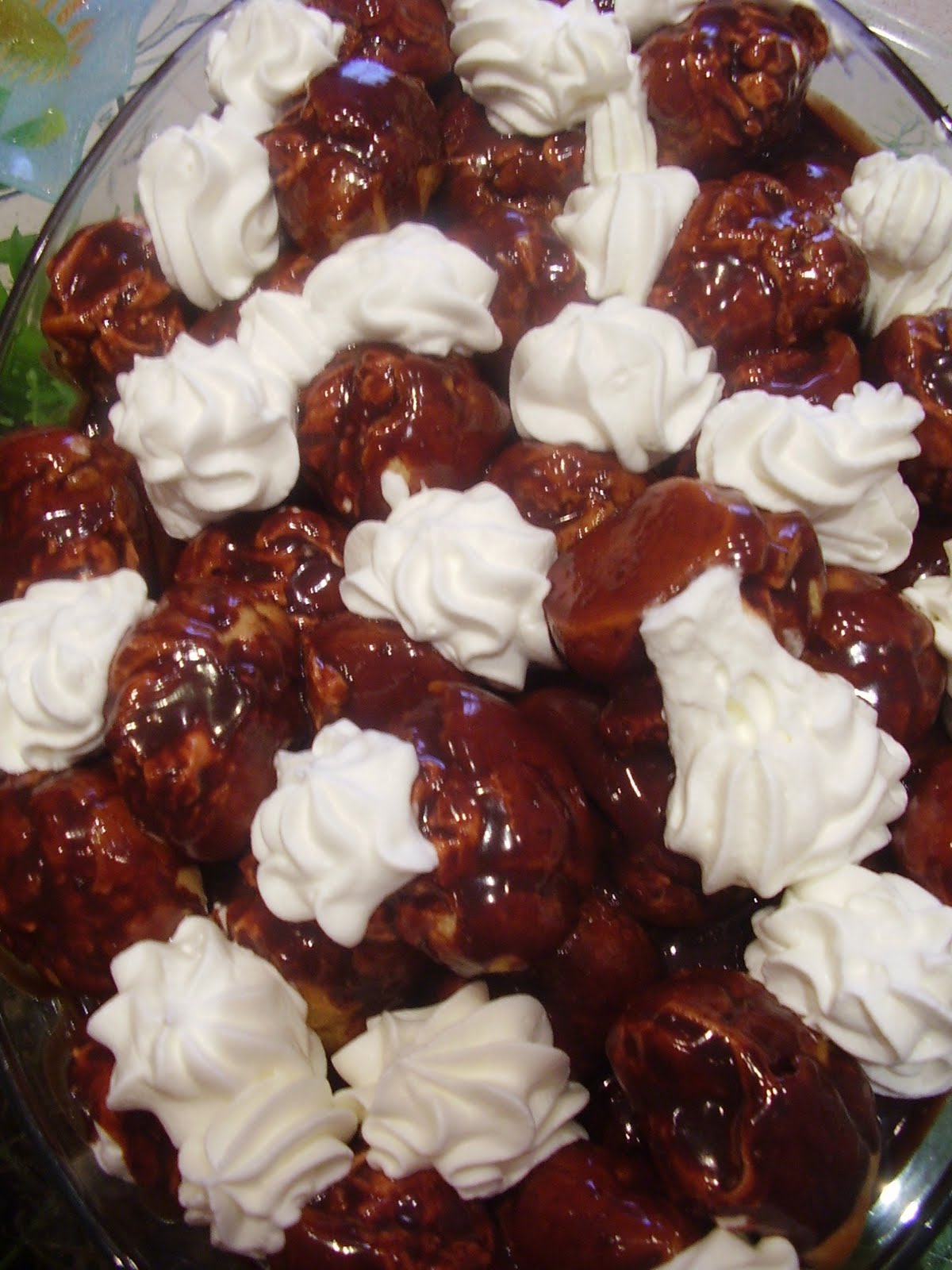 Terminata la cottura dei bigné, riempiteli con la panna e chiudeteli. Cospargeteli con la crema e fateli raffreddare in frigo.