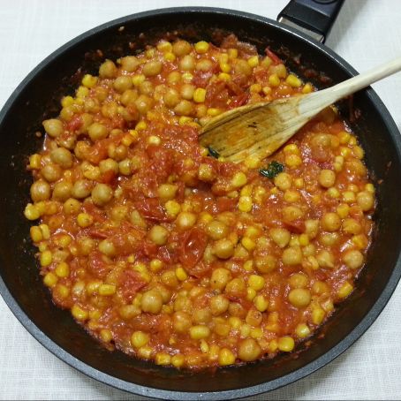 Lavare i ceci e metterli a cuocere in una padella grande. La stessa padella dovrà contenere tutti gli ingredienti!