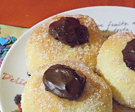 Con una tasca da pasticcere, forare le bombe e riempirle con la nutella.