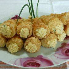 Arrotolare attorno ai cilindri, spennellare col l’uovo e infornare per una ventina di minuti o finchè la sfoglia non risulti ben dorata.