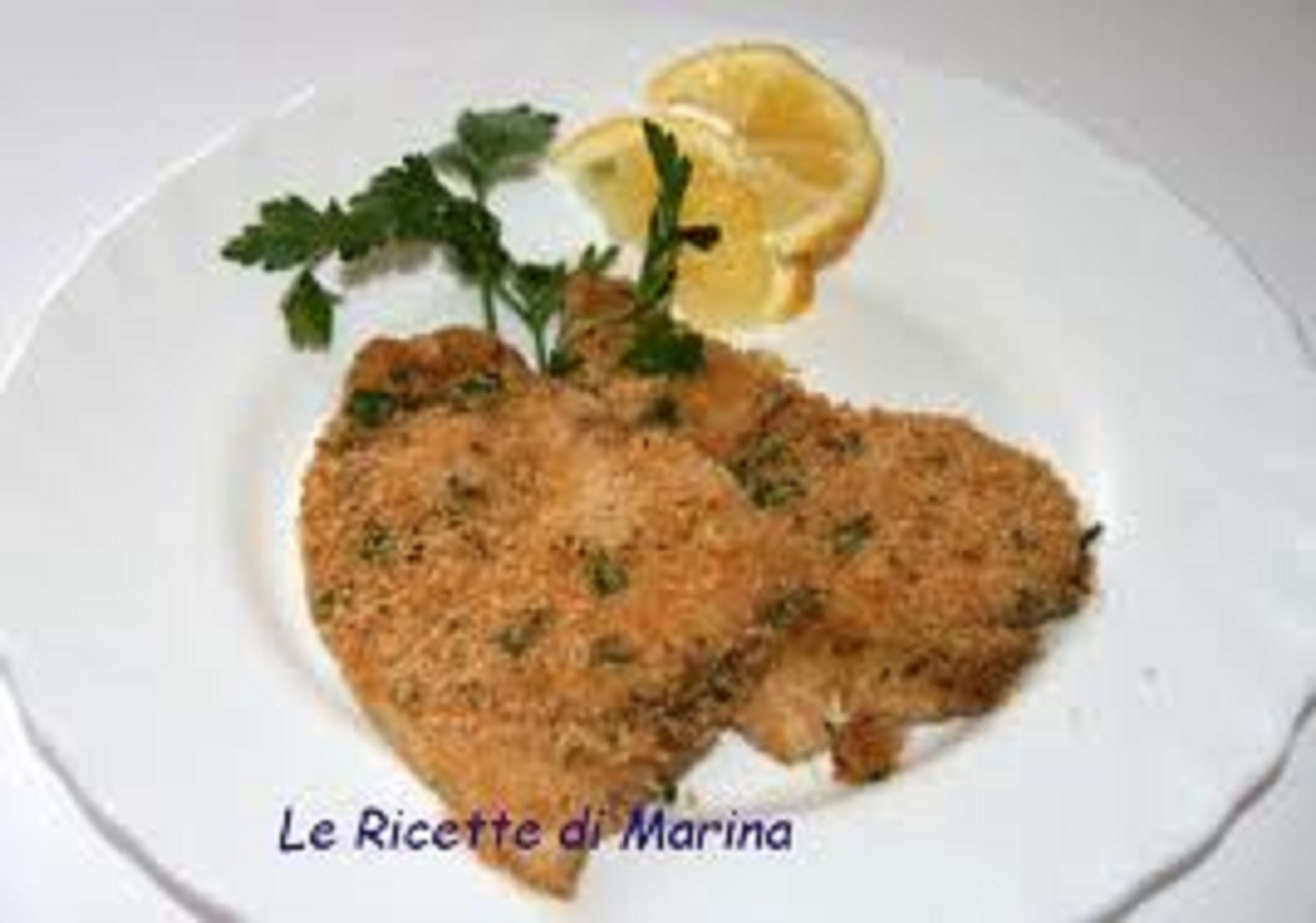Ricoprire i tranci di pesce col trito e spolverare con pan grattato e un filo d'olio.