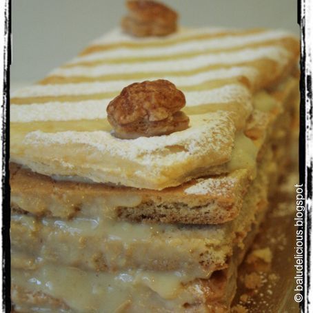 Quindi una volta avuto tutto a portata di mano ho assemblato come dicevo sopra alternando gli strati; sotto pasta sfoglia, crema pasticcerà, pan di spagna, crema. sfoglia crema, pan di spagna, crema e per ultimo pasta sfoglia. Qui poi potete creare le decorazioni che più vi piacciono con lo zucchero a velo e...buona diplomatica!!! ;)