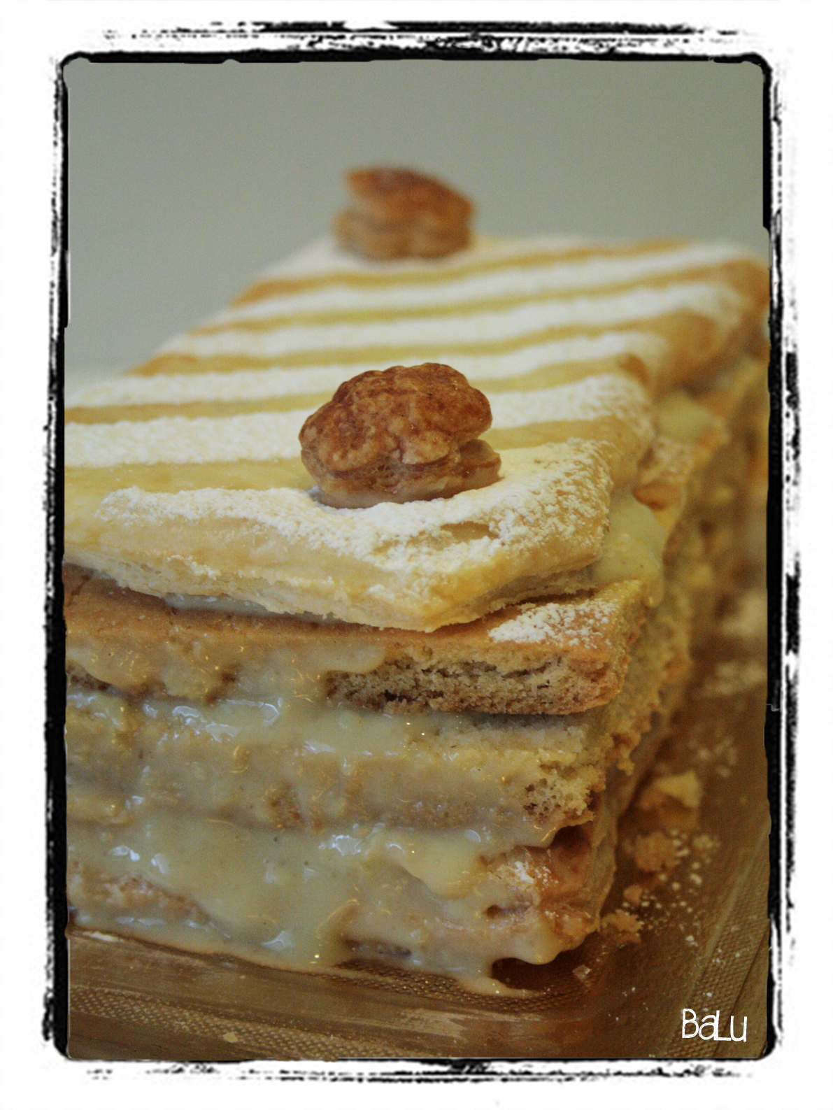 Dunque...dunque...come potete vedere dalle foto che ho messo io ho alternato gli strati mettendo prima la pasta sfoglia, ma....per essere precisi ho fatto così: ho cotto il pan di spagna in una teglia rettangolare in modo che poi la dovessi solo rifilare (così è stato ˆ_ˆ). Ho tagliato il pan di spagna in due mattonelle e le ho bagnate con una miscela di acqua e aroma di limone, questo perché mi è stato chiesto di non farla liquorosa, ma se voi oleate potete usare il liquore che più vi piace.