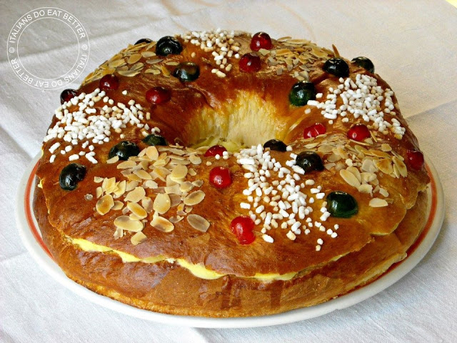 Tirare fuori l’impasto e impastarlo ancora una volta. Formare una ciambella e posizionarlo su una teglia foderata con carta da forno. Coprirla ancora e lasciarla raddopiare ancora il suo volume per un'altra ora e mezza.