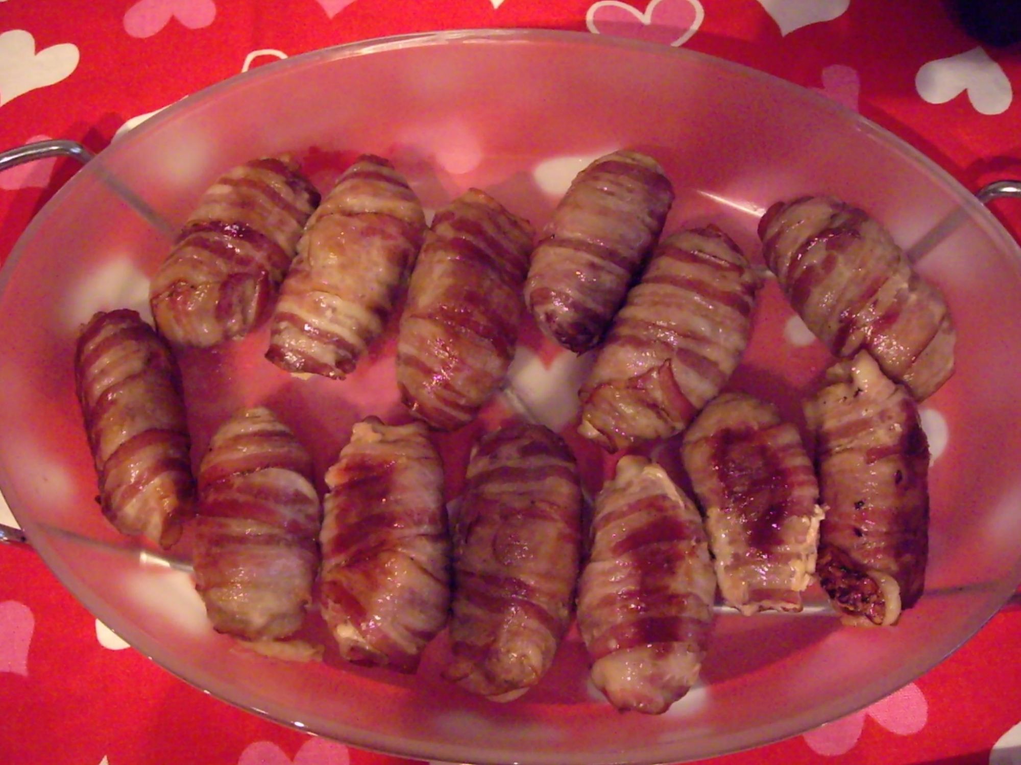 Piccoli polpettoni ripieni e avvolti con il bacon