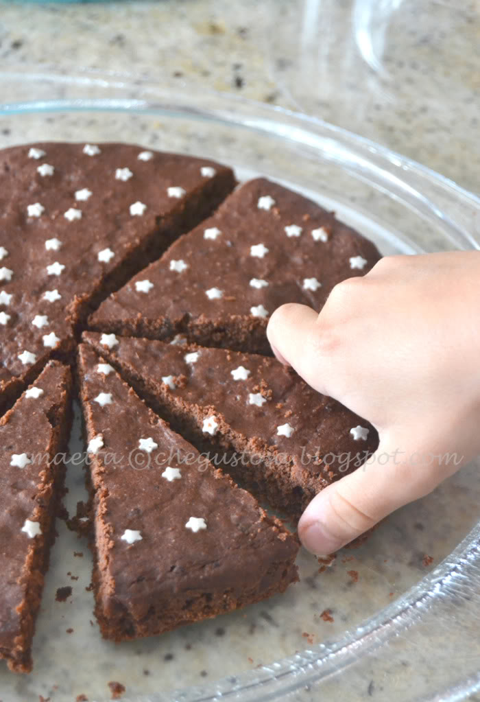 Procedimento:In una terrina lavora a crema la margarina, il burro e lo zucchero e aggiungi le uova e il miele, amalgamando il tutto; successivamente aggiungi la farina, le nocciole, la vanillina, il sale, la bustina di lievito, il cacao amaro e il cioccolato in polvere. Quando l’impasto è ben amalgamato, inserisci il cioccolato a scaglie e miscela sino a disperderlo bene. Versa tutto il composto in una tortiera di 24 cm di diametro, stendilo uniformemente e distribuisci le stelline su tutta la superficie. Metti il tutto in forno a 180° per 50 minuti circa, avendo l’accortezza di controllare la cottura con uno stecchino (estraendolo deve restare asciutto).Una volta fredda puoi decorare la torta con zucchero velo “disegnando” delle stelle...