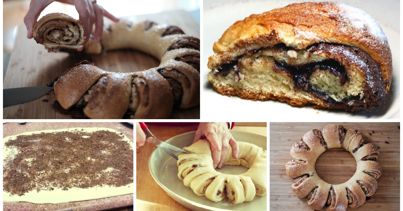 6. Sistemare il rotolo ottenuto in una teglia da ciambella rivestita completamente da carta forno. Praticare dei tagli profondi in superficie e far lievitare per 1 ora (vedi foto)