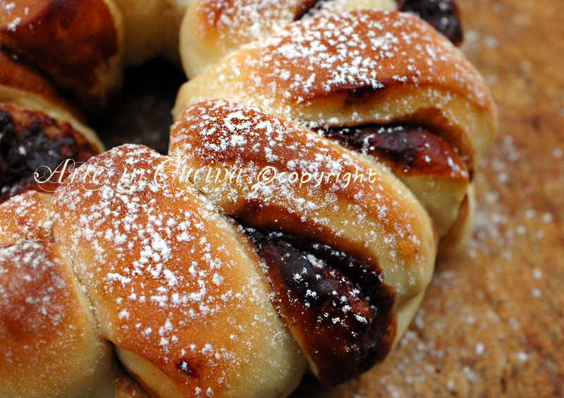Prelevate l’impasto farcitelo di nutella arrotolatelo e tagliatelo a girelle.