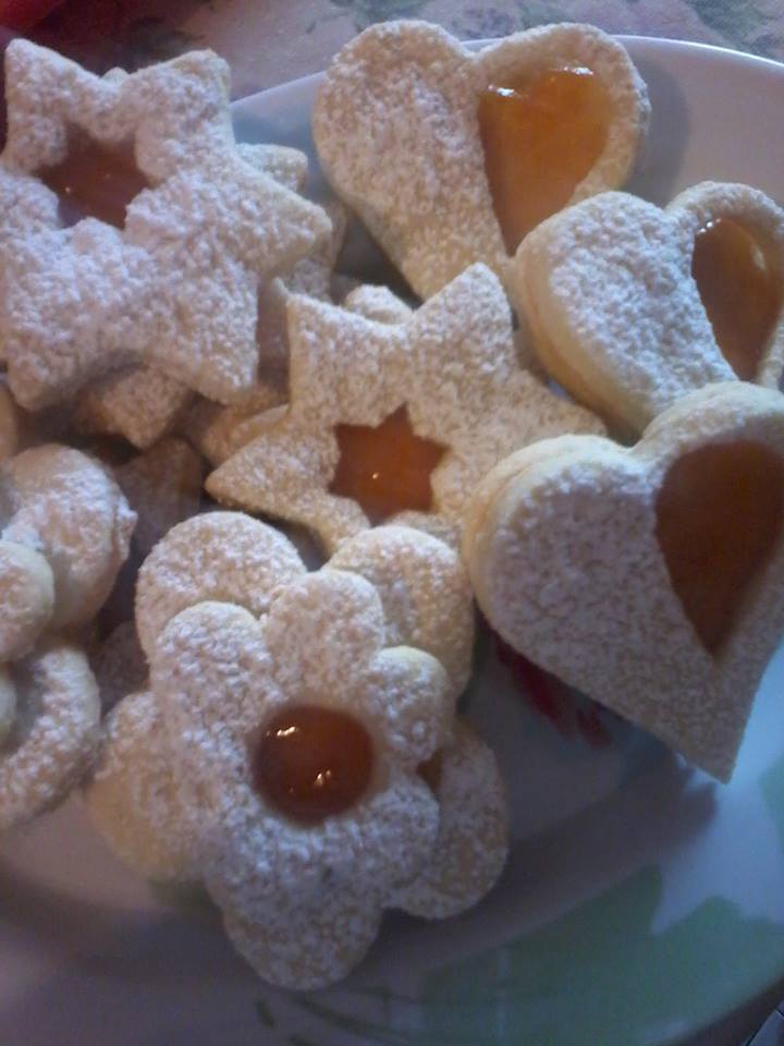 stendere e fare forme a piacere,cuocere ,poi unire a coppia con la marmellata,spolvera di zucchero a velo