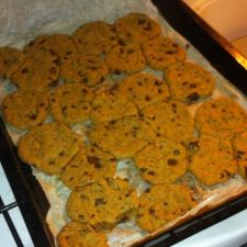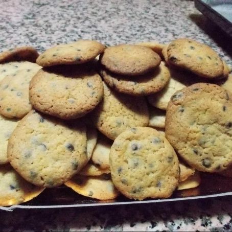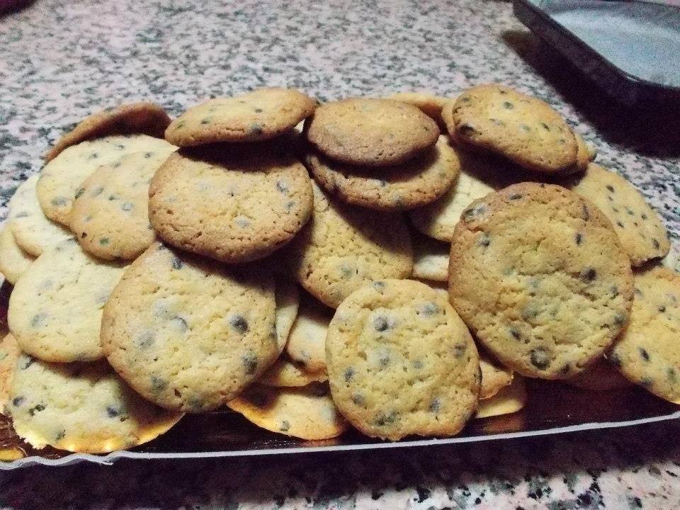 Aggiungere la farina con un pizzico di sale, la vanillina, il lievito e le gocce di cioccolato. Far riposare per 30 minuti in frigo.