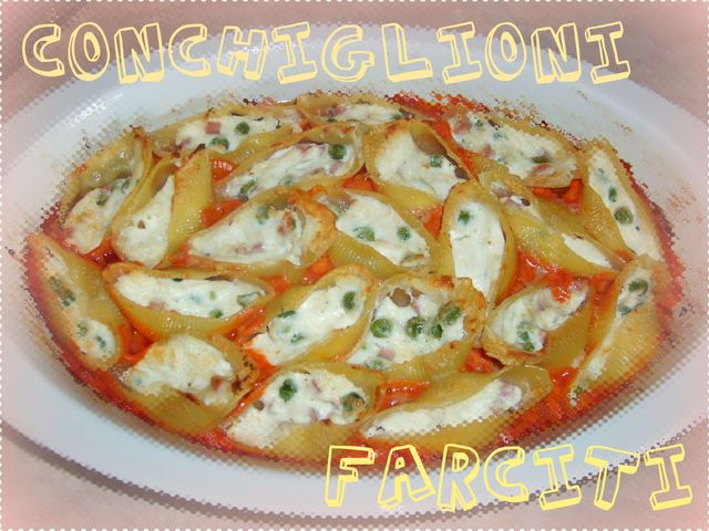 Ora farcite i conghiglioni e metteli in una pirofila dove avrete fatto un fondo di salsa, il sugo deve arrivare appena a filo della pasta.