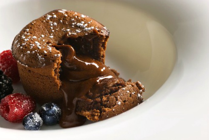 Fondete il cioccolato fondente a bagnomaria insieme al burro;sbattete le uova ed i tuorli con lo zucchero;setacciate la farina ed incorporatela al composto di uova e zucchero.