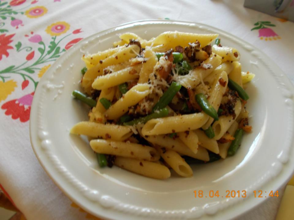 PENNE CON FAGIOLINI E CRUMBLE'