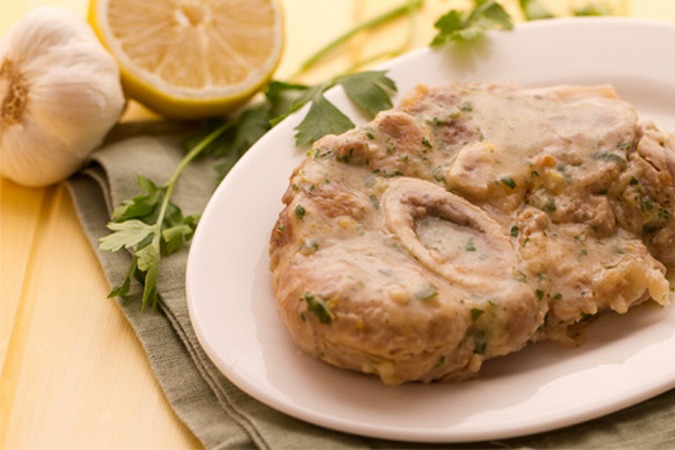 Lasciate cuocere a fuoco lento per almeno un' ora e mezza, coprendo con un coperchio; muovete la padella, facendola ondeggiare, di tanto in tanto per non fare attaccare gli ossibuchi e aggiungete un po' di brodo quando serve. Nel frattempo preparate un trito di prezzemolo, buccia grattugiata di mezzo limone e uno spicchio d'aglio, che aggiungerete a cinque minuti dalla fine della cottura.