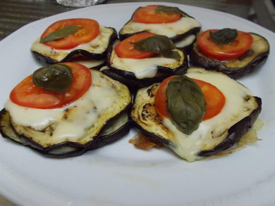 Ho creato le torrette con una fetta di melanzana, una di galbani, una fetta di pomodoro con qualche foglia di basilico.
