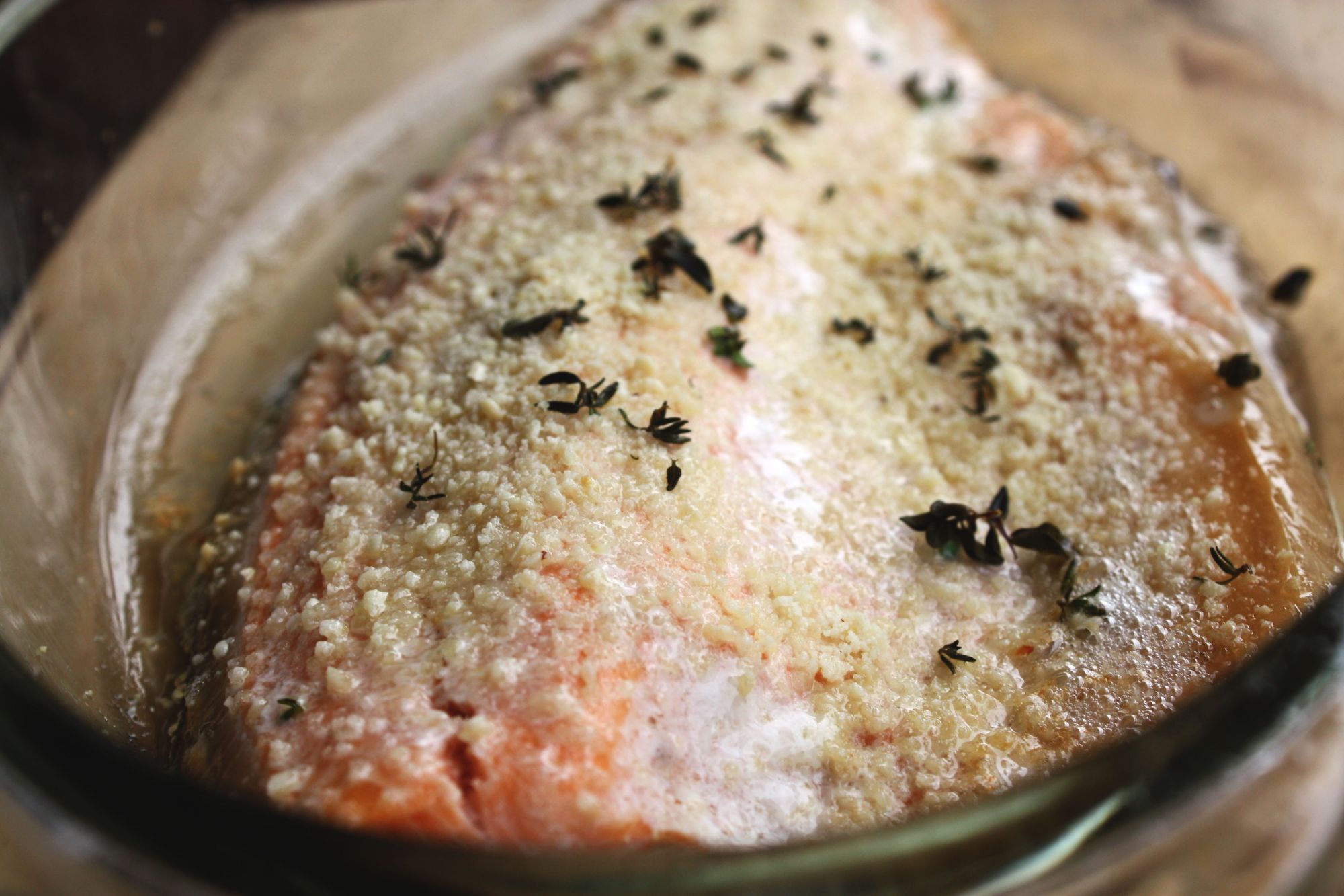 fatelo insaporire con gli odori. Impanate le trote. Fatele cuocere prime dalla parte della pelle. Poi giratele.Aggiungere vino, e dado. Fatele cuocere x qualche minuto con il coperchio. Fate ristringere il sughetto.Servite.