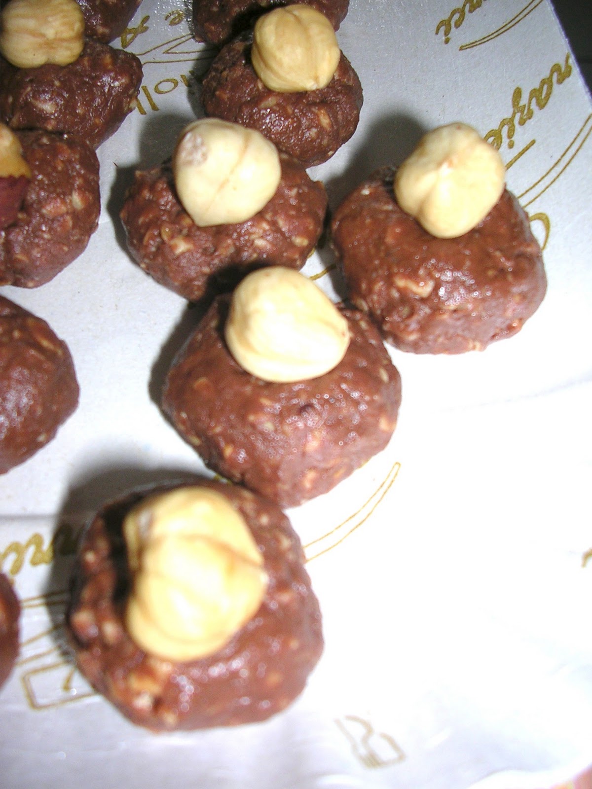 In un pentolino dal fondo spesso sciogliere il cioccolato al latte insieme al burro, in una ciotolina preparare la nutella e a parte la granella di nocciole. Unire alla nutella il cioccolato fuso e la granella di nocciole e mescolare il tutto. Riporre il composto in freezer per un quarto d’ora. Riprendere il composto e formare 14 palline che andrete a posizionare sulla carta forno.