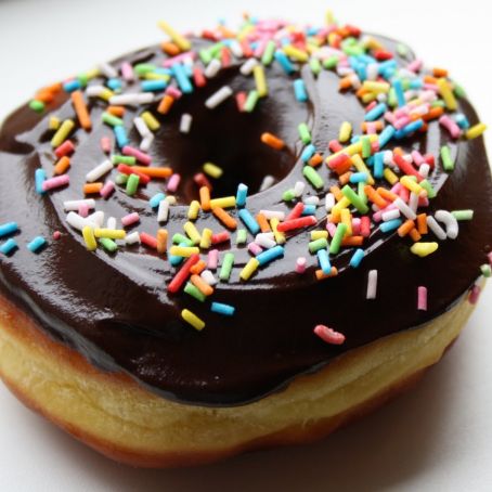 DECORAZIONE: Sciogliere il cioccolato a bagno maria o nel microonde e intingere solo un lato delle ciambelle, cospargendole con la mompariglia.