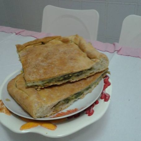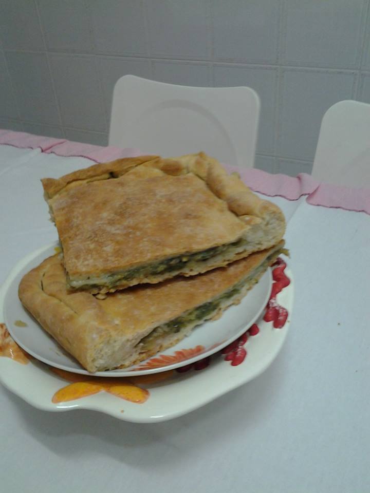 stendere in una teglia oliata un primo strato di impasto che dovrà essere bucato con l'aiuto di una forchetta, versare le scarole formando uno strato uniforme, i cubetti di mozzarella e chiudere con un altro strato di pasta bucherellato e oliato con le mani.