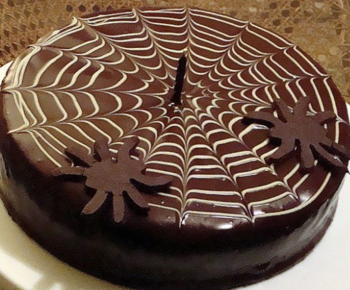 Fate sciogliere a bagnomaria il cioccolato bianco, mettetelo in una siringa per dolci con un beccuccio sottile (se non avete la siringa potete fare un cono con la carta forno);Disegnate un piccolo cerchio al centro della torta e poi altri cerchi concentrici, a partire dal centro verso l'esterno della torta;