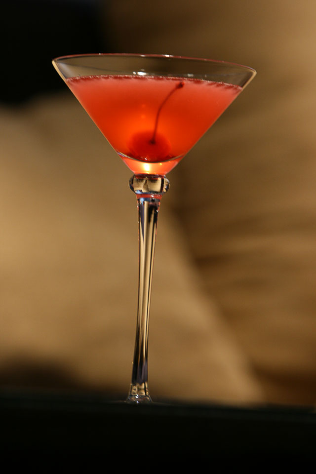 Mettete del ghiaccio nel mixing glass, aggiungete gli ingredienti, mescolate con cura. Versate il tutto in una coppetta da cocktail, filtrando con lo strainer, e guarnite con la ciliegina.