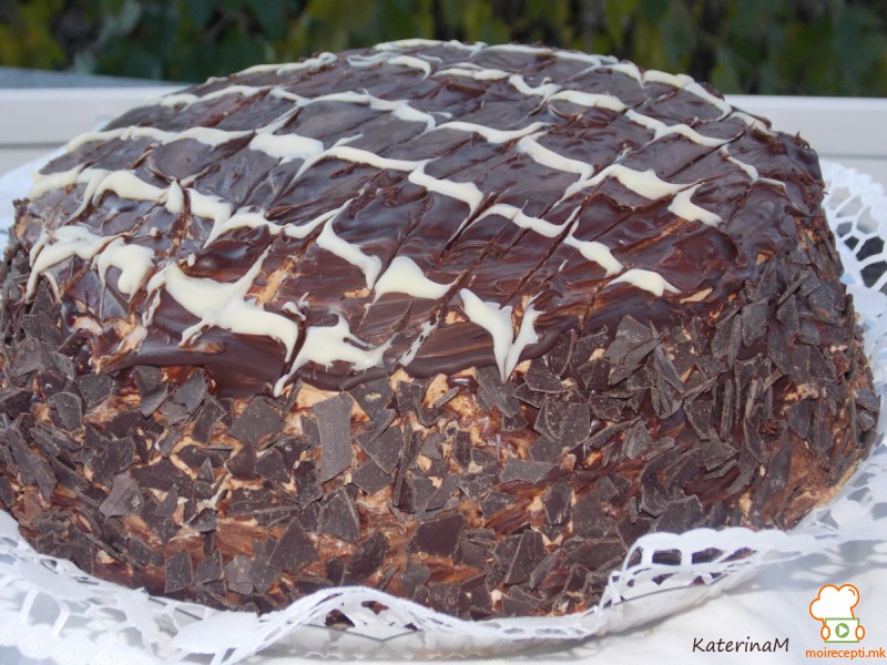 La torta di base ha messo un pan di spagna marrone , cospargere con il latte caldo ( non tanto perché pandishpanite morbido ) .