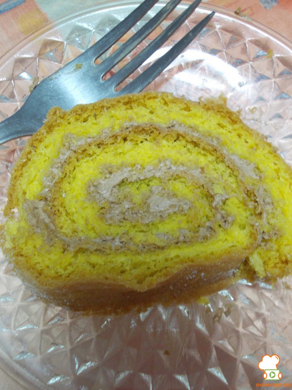 La carta da forno o un panno pulito cospargere 1 cucchiaio di zucchero a velo sulla superficie . Dopo il trasferimento ispekol spugna carta della torta / panno . Rimuovere il rotolo di carta e avvolgere . Lasciar raffreddare .