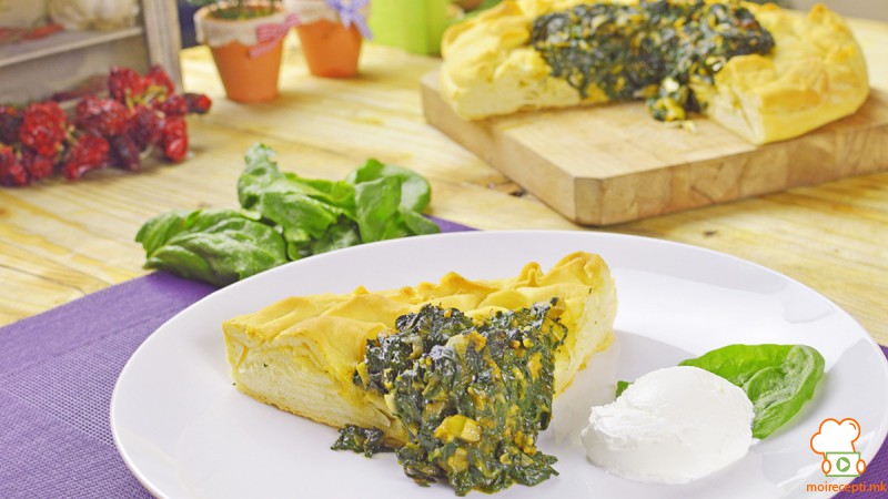 Fase 2: Nel frattempo, preparare il ripieno. Potprzhete l'olio il porro tritato finemente e poi aggiungere gli spinaci, spezie miste, pepe e acqua. Lasciar cuocere a fuoco lento per 20 minuti, o fino a quando l'acqua è evaporata e potprzhi spinaci.