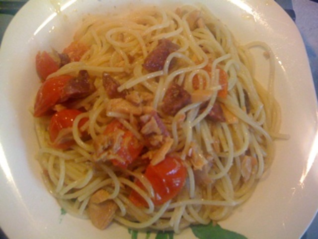 Spaghetti con il tonno e il salame