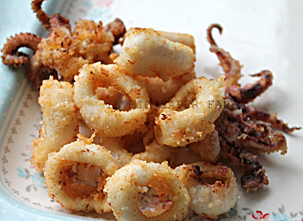 Sciacquare i calamari sotto l’acqua corrente. Privare i calamari delle interiora e tagliarli in modo da ottenere degli anelli, bisognerà quindi prendere la parte lunga della testa e tagliarla in orizzontale. E’ meglio che questo tipo di operazione la esegua il pescivendolo di fiducia. Sbattere le due uova e unirvi gli anelli di calamaro e poi i tentacoli. Rimescolare e poi passarli nella farina bianca. Preparare una padella antiaderente e versare due dita d’olio. Far surriscaldare, provare a tuffare una goccia di uovo sbattuto nell’olio, appena inizia a scoppiettare vuol dire che è pronto per iniziare la frittura. Tuffare il pesce nella padella. Attendere che si dori da tutte le parti facendo attenzione a rigirarlo. Levare il pesce dalla padella poggiarlo su carta assorbente. Servire ben caldo e irrorare con succo di limone.
