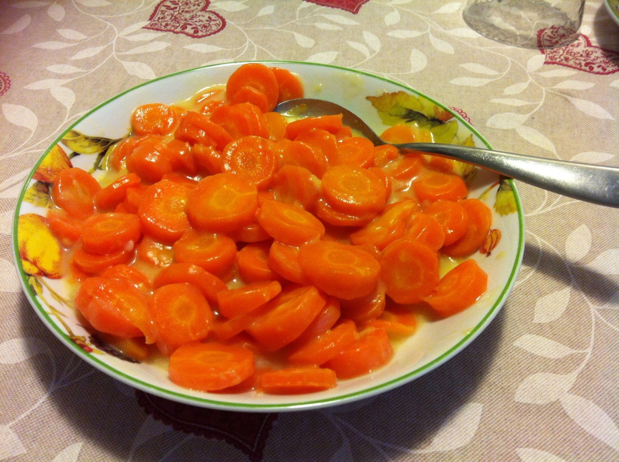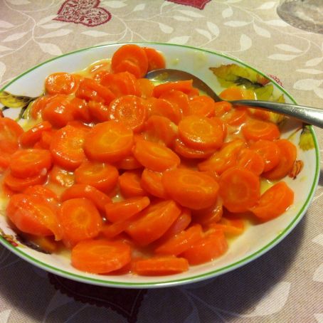 Tagliare le carote a rondelle, metterle in una casseruola con burro, sale, pepe, zucchero e coprirle con acqua gassata e un pugno di farina.