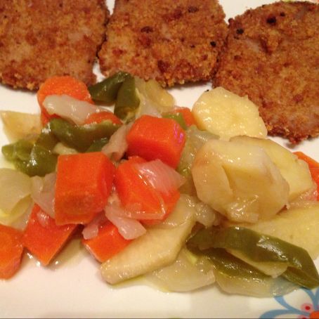 Completate distribuendo la carne in ogni piatto, ed aggiungendo anche un po' di salsa di cottura.