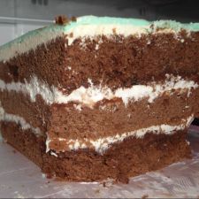 Sbattere le uova con lo zucchero e aggiungere poco per volta la farina. Sciogliere il cacao in 2 cucchiai d'acqua calda e girare bene per evitare grumi.