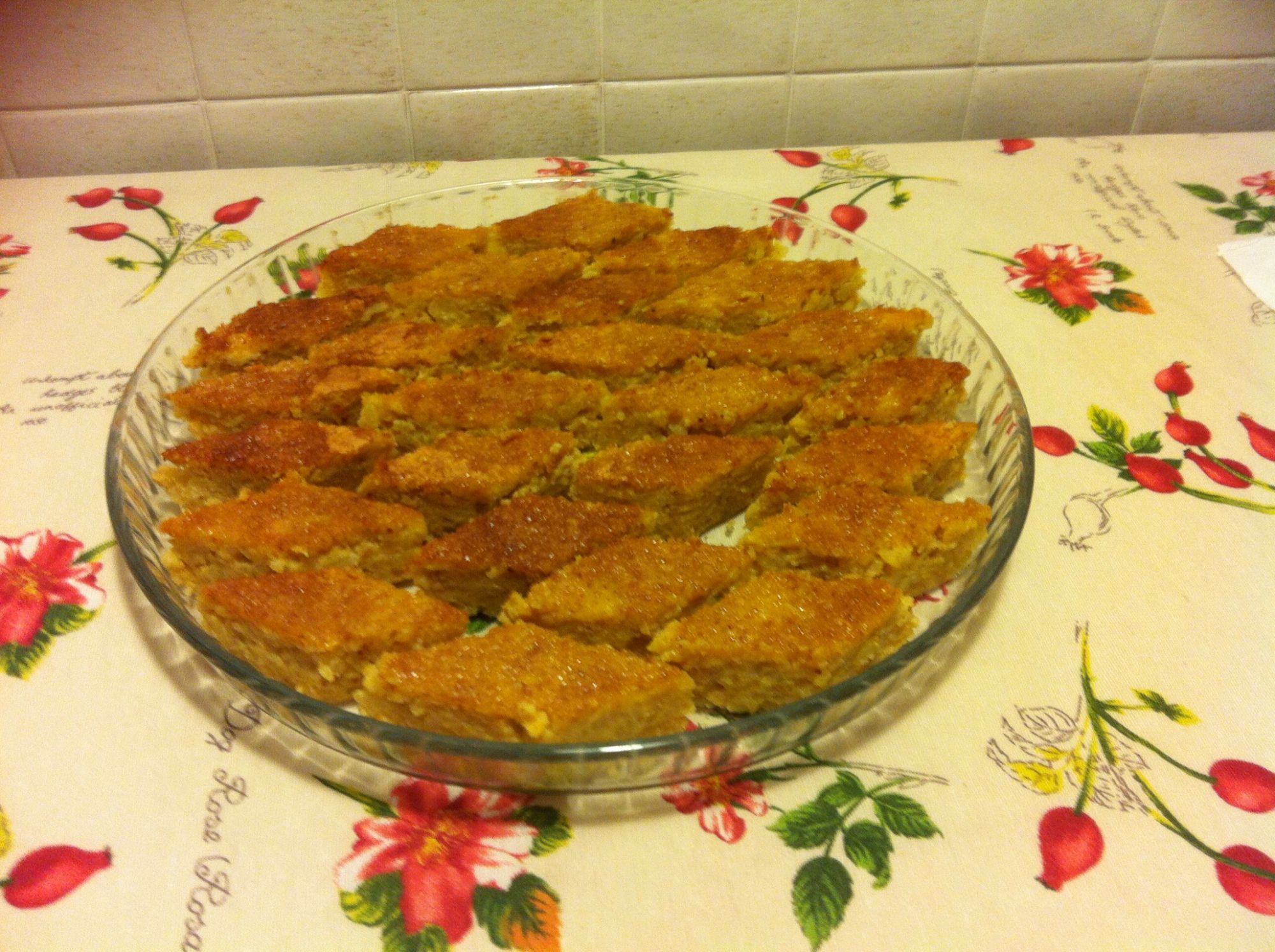 A cottura ultimata cospargere la torta con la metà rimanente del liquore alla mandorla e servirla fredda tagliata a cubetti.