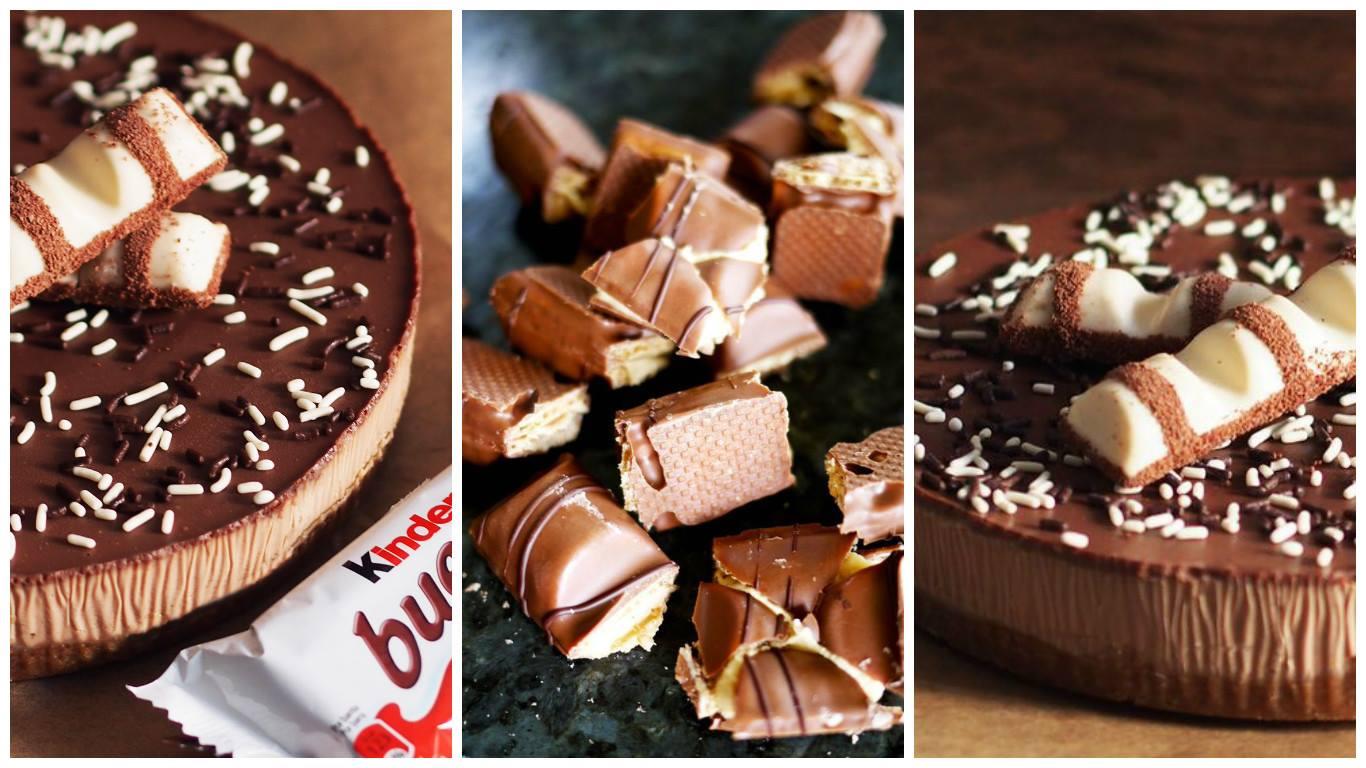 - 4 uova 200 gr. di zucchero 100 ml. di latte 100 ml. di olio di semi di girasole 220 gr. di farina 00 3 cucchiai di cacao amaro in polvere 220 gr. di Nutella 1 bustina di lievito per dolci 250 ml. di panna da montare 4 Kinder Bueno 250 gr. di cioccolato fondente Nocciole sgusciate q.b.