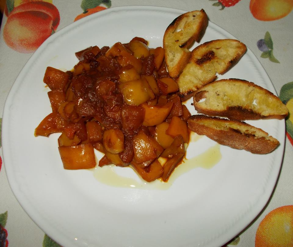 La pesca è un frutto che si sposa benissimo anche con i cibi salati. Questa ricetta, perfetta da servire come antipasto o come aperitivo, è veloce da preparare e stupirà i vostri ospiti. L'accordo delle pesche con la pancetta è davvero inedito. Anche i più scettici si ricrederanno.