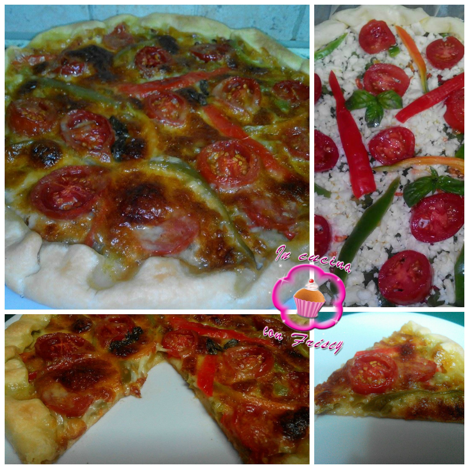 Preparare la sfoglia di brisée e stenderla a cerchio con un diametro di circa 30 cm. Foderare con carta da forno una teglia rotonda da 28 cm e mettere la sfoglia. Riscaldare il forno a 180 °C. Tagliare a pezzetti i peperoni lasciando da parte qualche losanga per guarnire e tritare gli altri fino ad ottenere dei pezzettoni. Scolare l'eventuale acqua e distribuire sulla sfoglia. Tritare la mozzarella e distribuirla sui peperoni. Mettere sulla mozzarella i pomodorini tagliati a fette spesse. Guarnire con foglie di basilico e le losanghe tenute da parte. Salare e irrorare con l'olio. Infornare a 180 °C per 40-45 minuti circa.