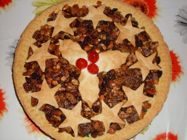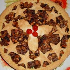 Preparare il ripieno mescolando insieme tutta la frutta secca spezzettata grossolanamente, aggiungendo il rum in cui avete ammollato l'uvetta e un po' di miele o marmellata di albicocche per amalgamare.