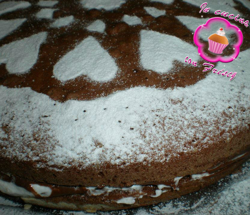 Quando è ben fredda tagliare la base a metà, bagnare i due dischi con un pò di latte, farcire con la crema di nocciole e la panna montata in precedenza e chiudere. Decorare a piacere con lo zucchero a velo.