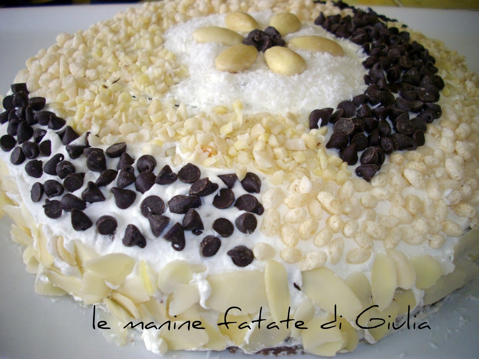 Montate il dolce sovrapponendo due dischi e mettendo fra uno e l’altro uno strato di panna montata. Coprite con il terzo disco tagliato in otto spicchi (come da foto). Decorate con ciuffi di panna montata, con fragoloni freschi tagliati a metà e cospargete con il cocco grattugiato.