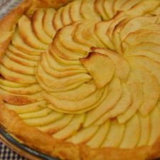 Preriscaldate il forno a 180°. Tagliate la mela a fettine fine. Mescolate in una ciotola l'uvetta, la farina di mandorle, lo zucchero di canna, la farina e la cannella. Stendete il rotolo di pasta sfoglia e aggiungeteci le mele al centro. Con un coltello appuntito, tagliate la pasta su ogni lato delle mele. Fate dei tagli sulla superficie, distanziati di 2 cm l'uno dall'altro. Iniziate ad intrecciare la pasta partendo dalle estremità e portandole verso il centro, accavallando le bande di pasta.